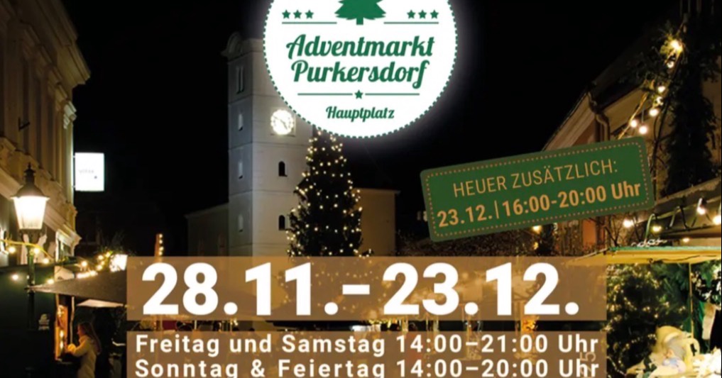 ✨ Adventzauber am Purkersdorfer Hauptplatz! ✨Bald ist es wieder so weit: Ab 28. November öffnet der Adventmarkt am Hauptplatz seine Pforten und bringt Kunsthandwerk, Kulinarik, Glühwein & Punsch direkt ins Herz der Stadt. 🎄✨🎉 Offizielle Eröffnung 🎉28. November, 18:00 UhrWie jedes Jahr findet die…